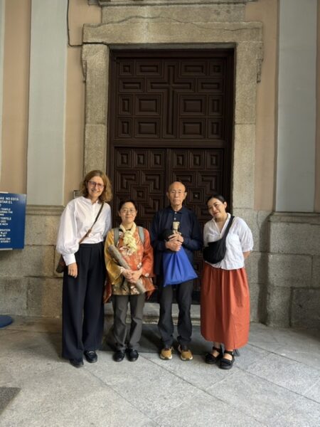 今回のスペイン入国一日目はマドリードから始まります。マドリードはスペインの首都ですね。この街の中心地にサン、イシドロ教会があります。この教会は日本人には最も馴染みのあるイエズス会が関与する教会でした。事実、教会が建てられた当初は、フランシスコ、ザビエルが守護神として祀られていた教会だったのです。後にイエズス会はマドリッドからの追放の憂き目に会い、サン、イシドロがこの教会とマドリードの守護神として今日に至っています。イシドロはマドリードに住む、貧しいけれど敬虔で信仰深い人物でした。数々の奇跡を起こしたが故に後、聖人に列席されました。日本人にとっても、とても因縁の深い教会でもあるのです。私たち(大野利可先生と私)の献笛はスペイン入国の最初にこの因縁の深い教会から始まりました前日の夕方教会で出会った神父さんに献笛の希望を伝えましたが、要領を得ず2日目の朝のミサに預かって偶々出会った主任神父の快諾を得て堂々の献笛です。前回の5年前と比較しても明らかにキリスト教を信じる人たちは減少していると思われるミサ模様でした。それは兎も角も、私たちは荘厳且つ穏やかな古式豊かなこの教会で吹いたのです。ミサが終わった信者さんの祈り続ける中、わずかの演奏時間でしたがとても嬉しい結果となりました。神父さんがたも、信者さん達も喜びと感動を沈黙の内に嬉しいゼスチャーで示してくれました。あるご婦人が近づいて一緒に写真撮りました。このご夫人の仕事は、妊娠中に亡くなった赤ちゃんの為に心身のケアーをするのが仕事だと伺いました。葬儀屋さんなのかも知れません?今朝もその追悼の祈りの為のミサ参加の様でしが、このささやかな献笛の音色が深く大きく導いてくれましたというご趣旨のお話に笛を吹く喜びがいや上にも広がったという次第です。気持ちの良い余韻の後、ピカソのゲルニカの鑑賞に行きました。いずれもそうなんでしょうが、特にこの作品は渾身中の渾身と言っても言い過ぎることはないと思います。ゲルニカの地名もさることながら、フランコ将軍やドイツ軍隊の強権的暴力の匂いが今も蘇って来ます。暗くて辛くてやるせない歴史です。世界があれ程の不戦を誓ったのに、何としたことでしょうか?関東大震災の後、寺田寅彦は「天災は忘れた頃にやって来る」の名言を残しましたが、昨今の様相は「戦争は忘れる間も無く繰り返す」と言った実状です。地球環境に至っては、その原因は人災によると言った話は冗談でも何でもなく、その通り、と誰もが納得の今日です。悲しい時代となりました。万物の霊長などと言って寝ぼけ続けていたこの霊長様は他の命も道連れに地獄の底まで連れて行く気なんでしょうか。余りにも傲慢です。なんとかなるでしょうか?
